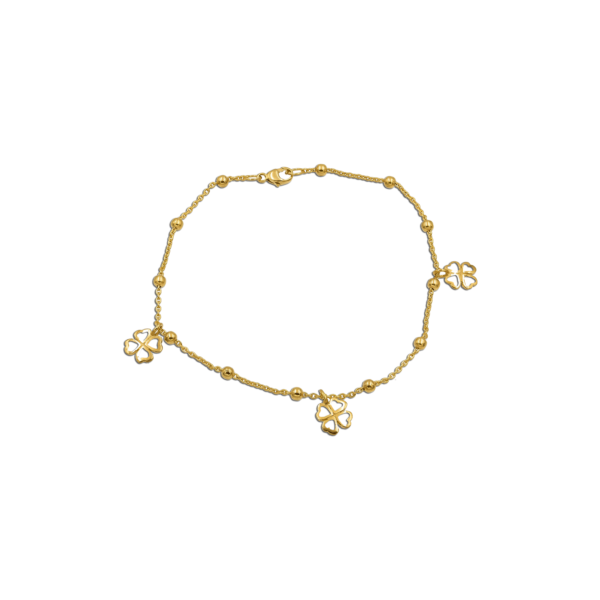 Bracciale Milleluci con 3 Quadrifogli Perfilo pendenti in argento 925 dorato.