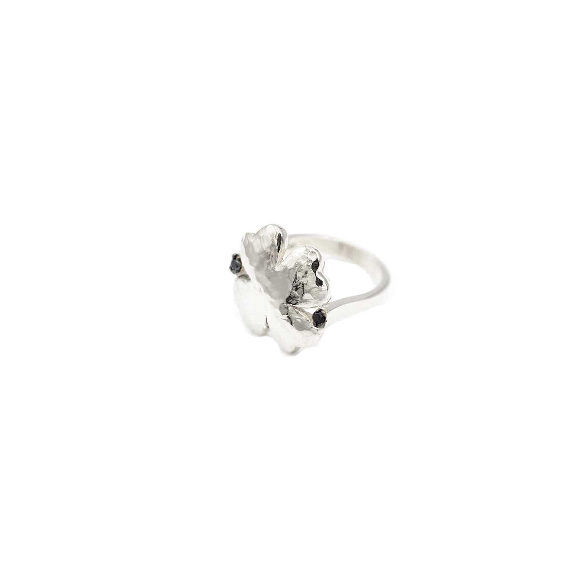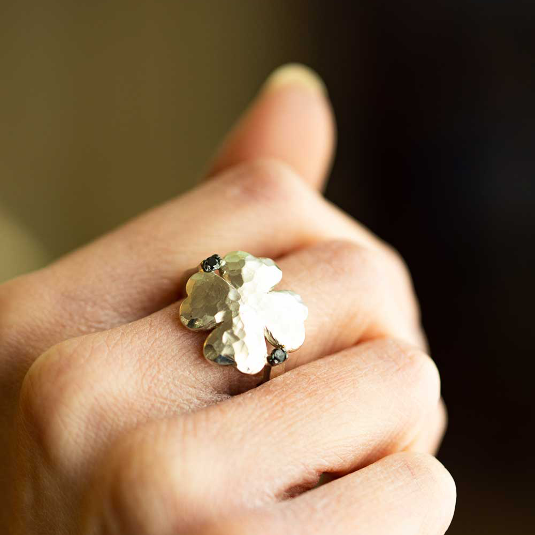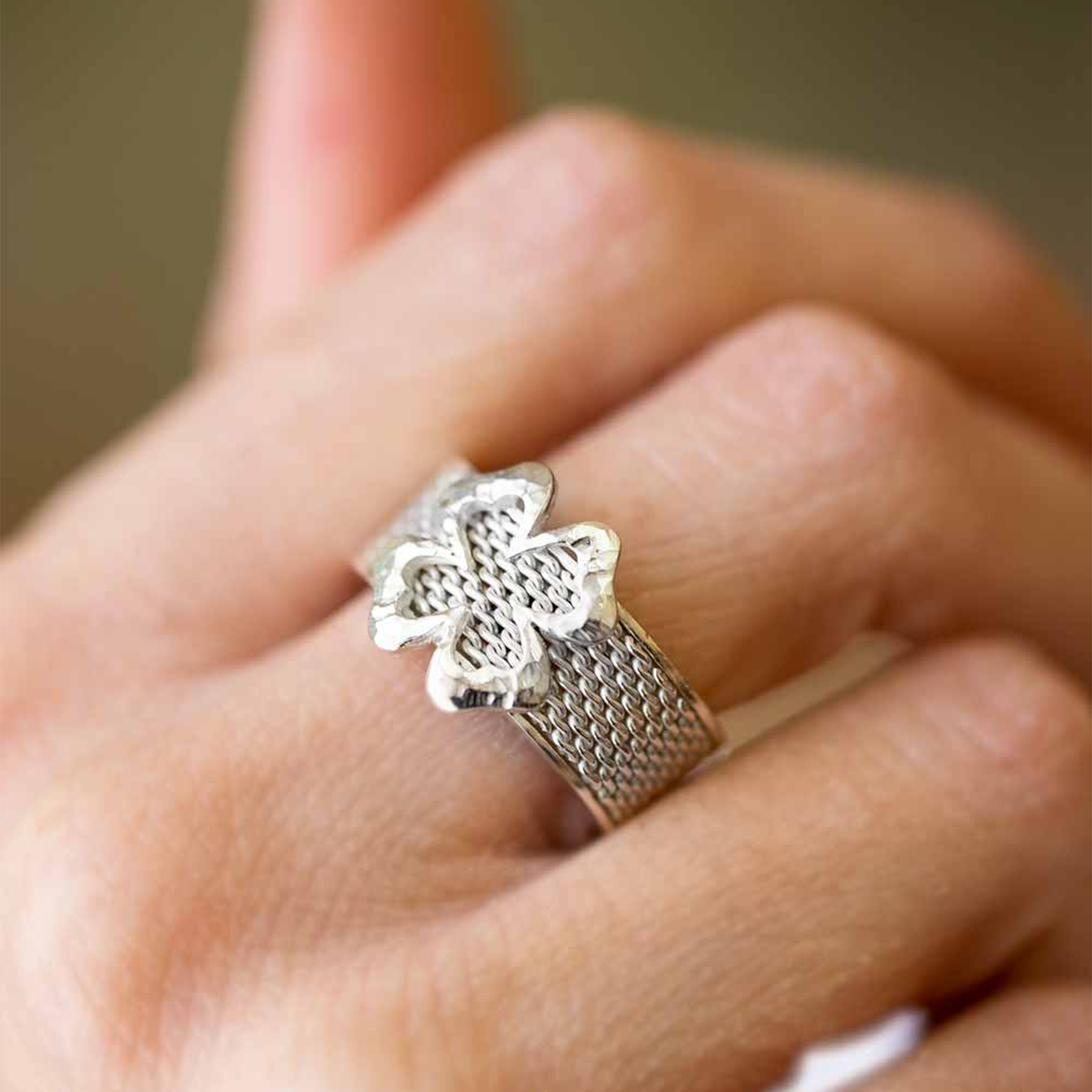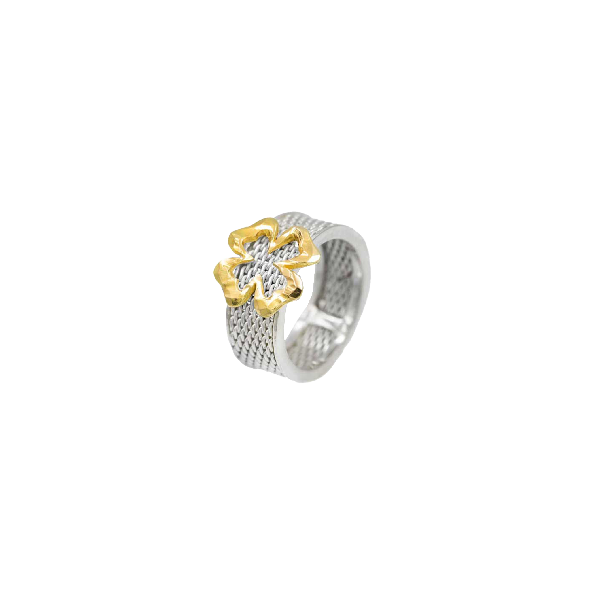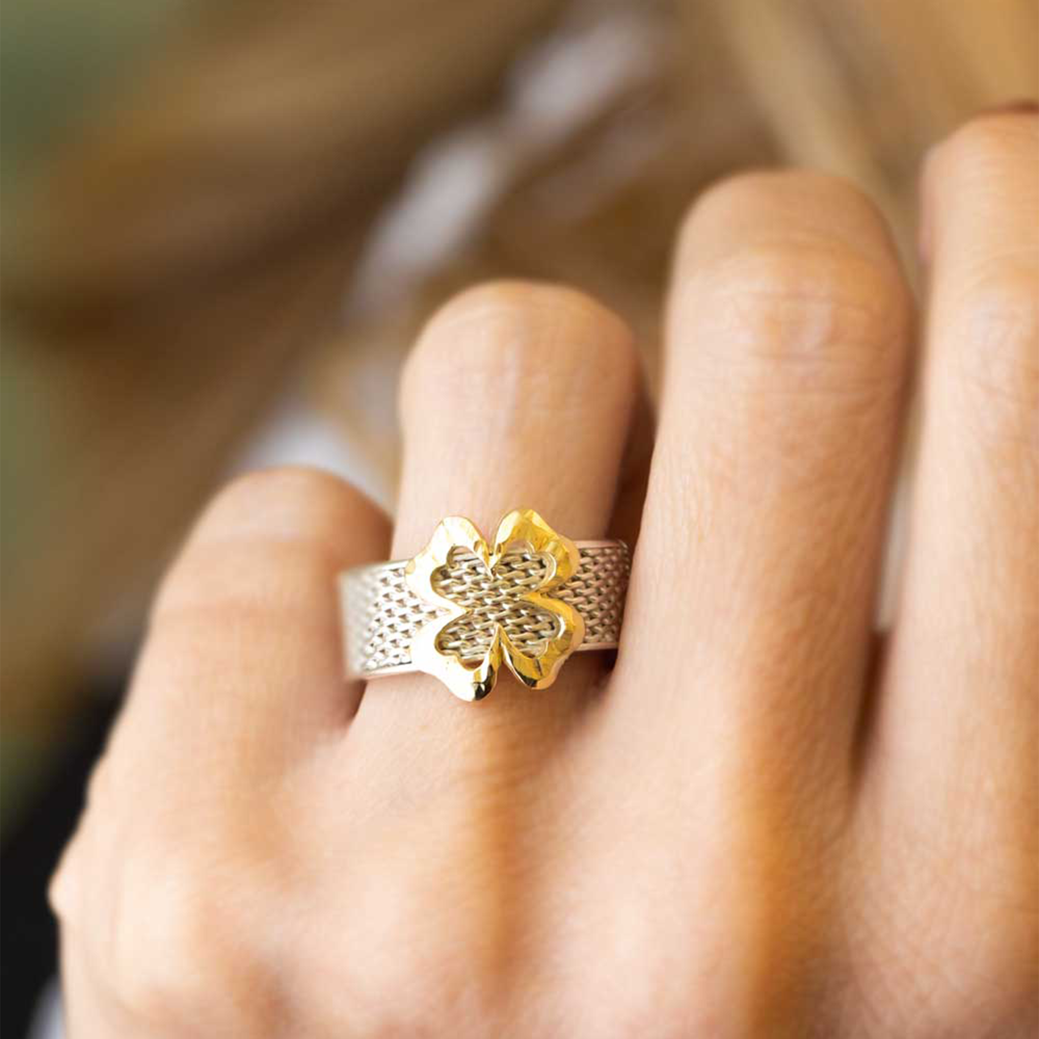 Bracciale Portafortuna rigido in argento naturale 925 e Quadrifogli bombati in oro giallo 18ct.