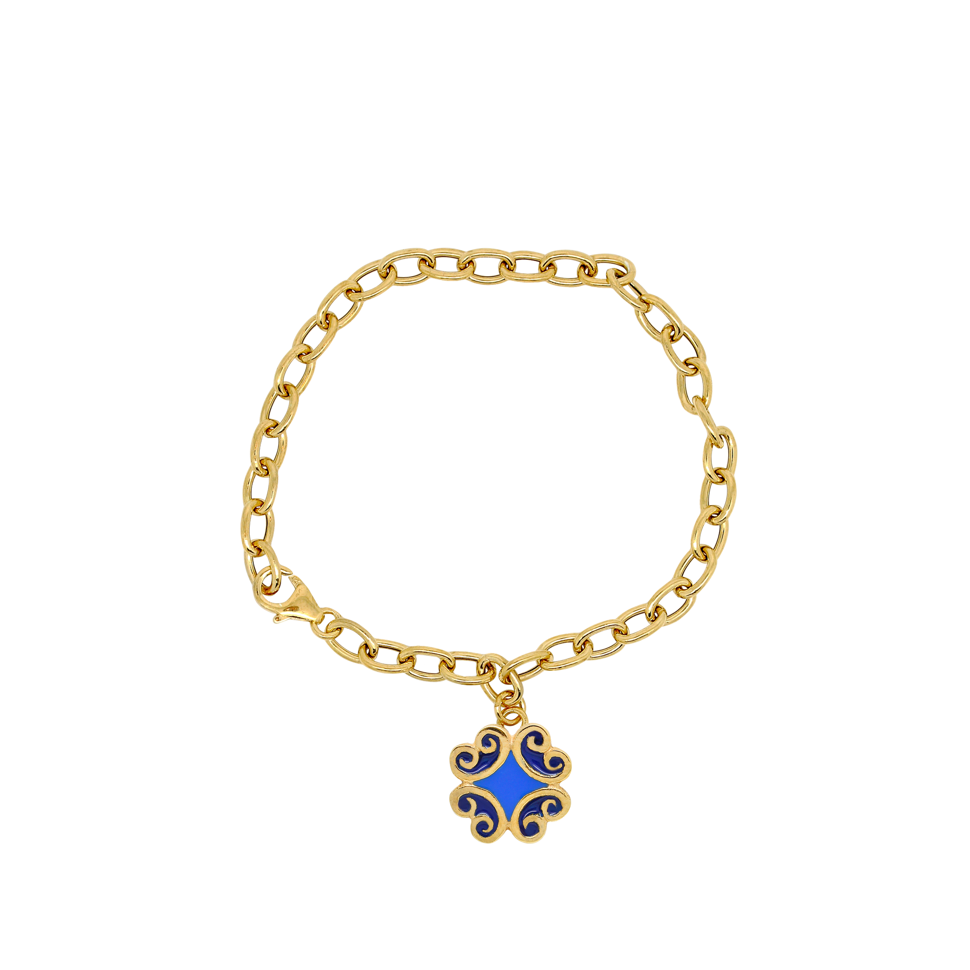 Bracciale catena in argento 925 dorato e Maiolica blu in argento 925 dorato e smalti colorati.