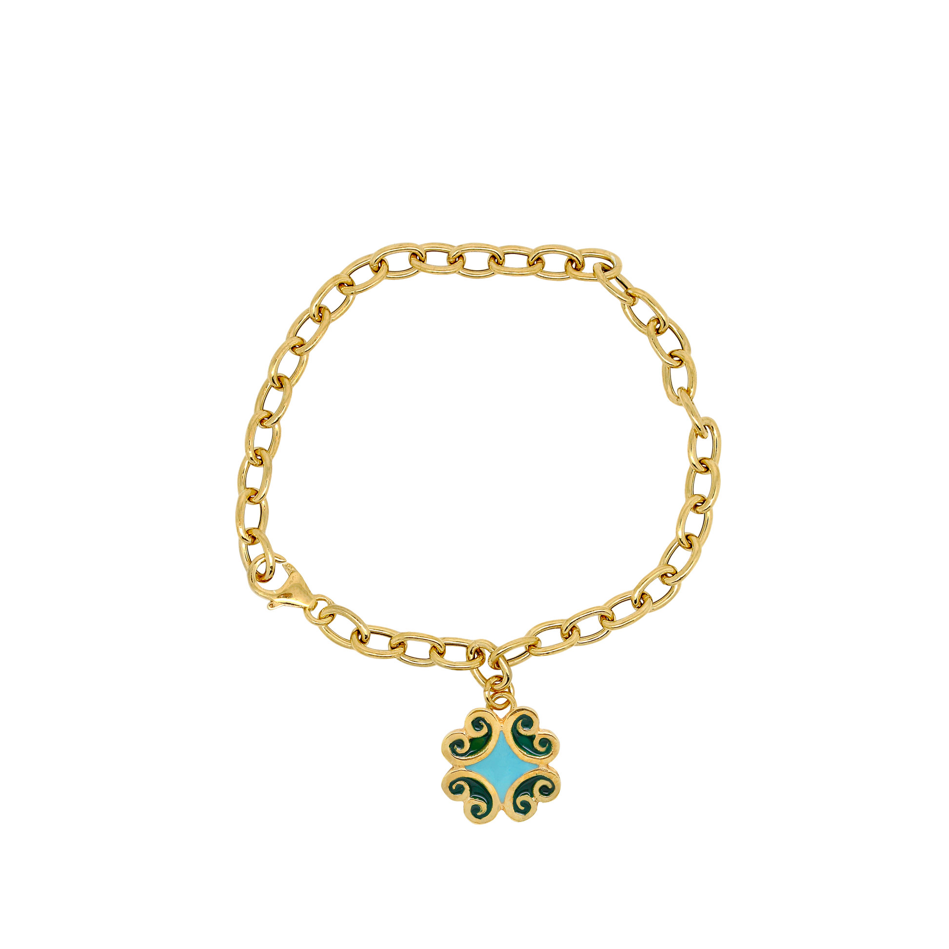 Bracciale catena in argento 925 dorato e Maiolica in argento 925 dorato e smalti colorati.