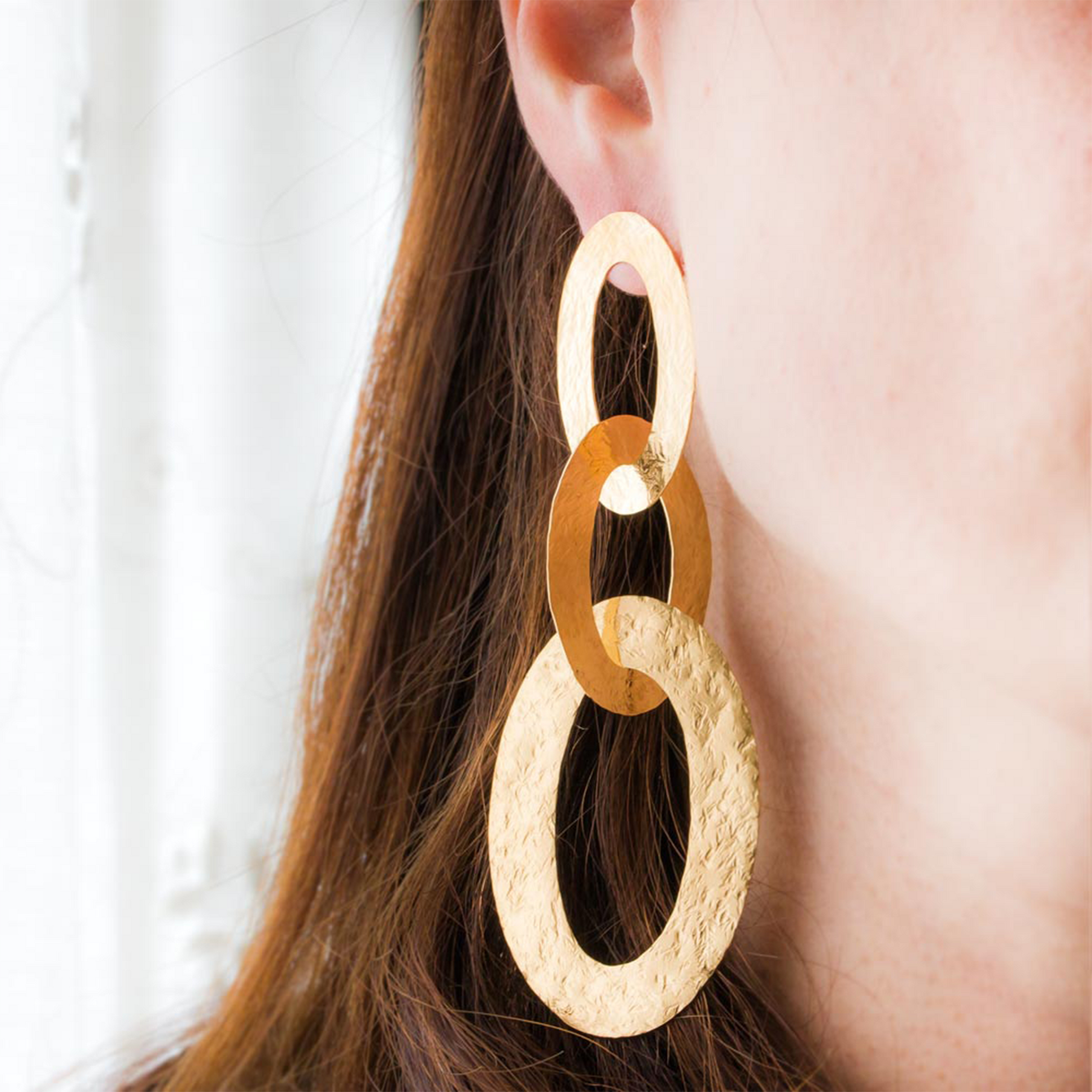 Orecchini Collezione Barbazzale 3 maglie ovali in argento 925 dorato e martellato.