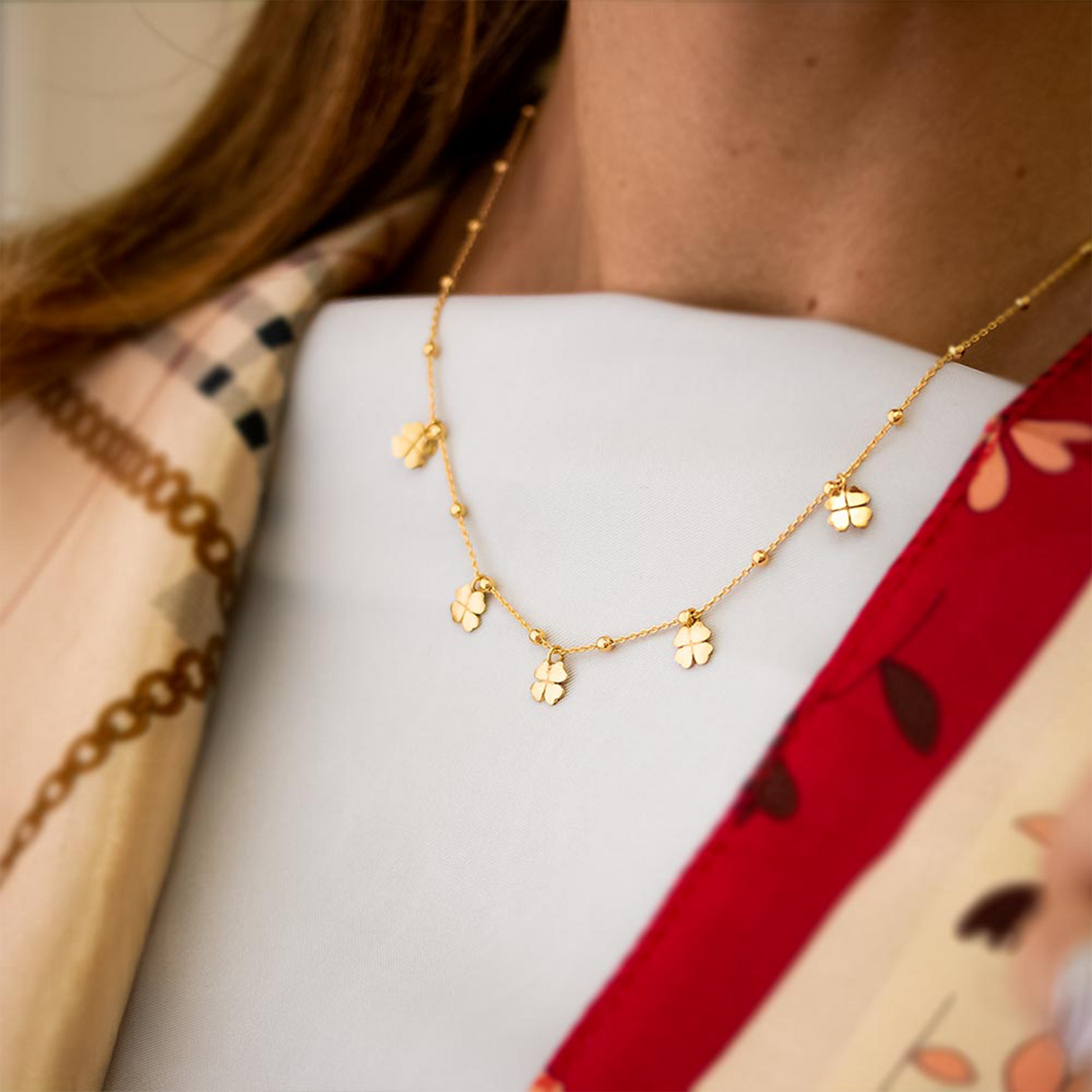Collier Milleluci con 5 Quadrifogli pendenti in argento 925 dorato.