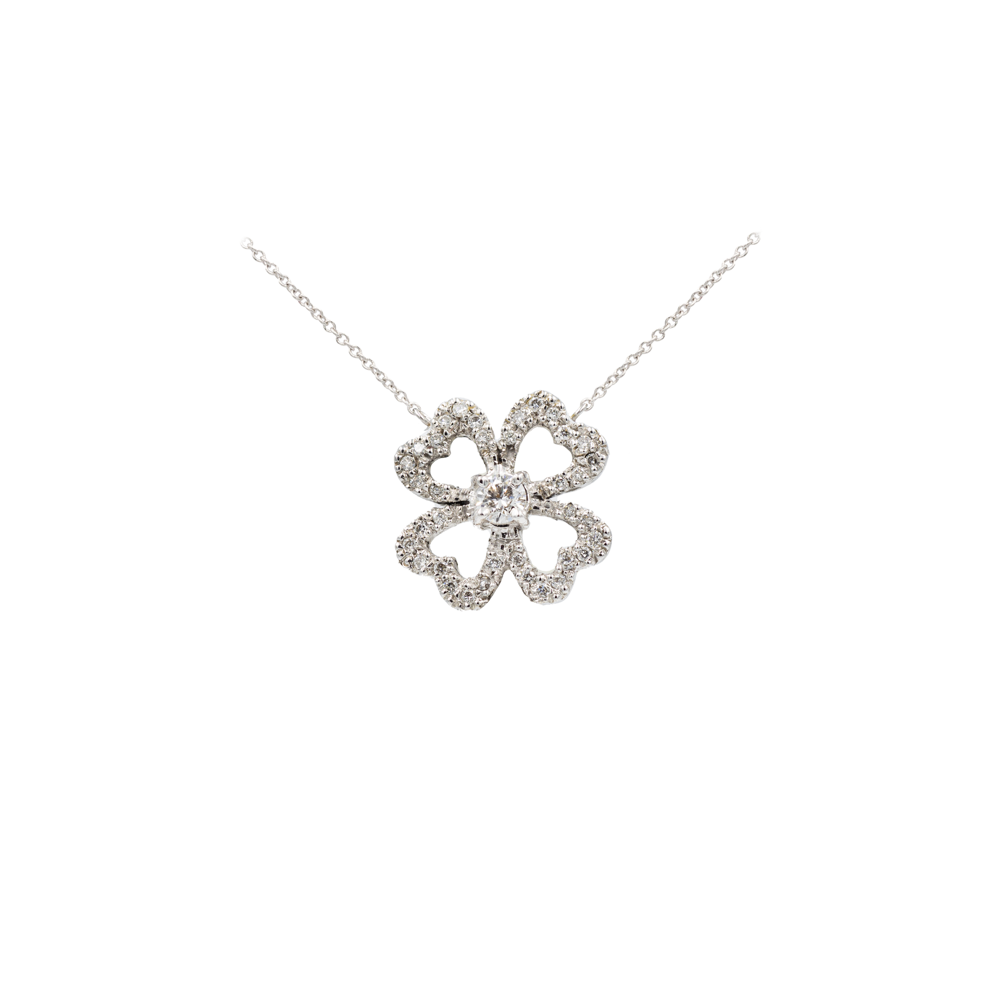 Collier Quadrifoglio Portafortuna in oro bianco 18kt Diamanti taglio brillante ct. 0,33.