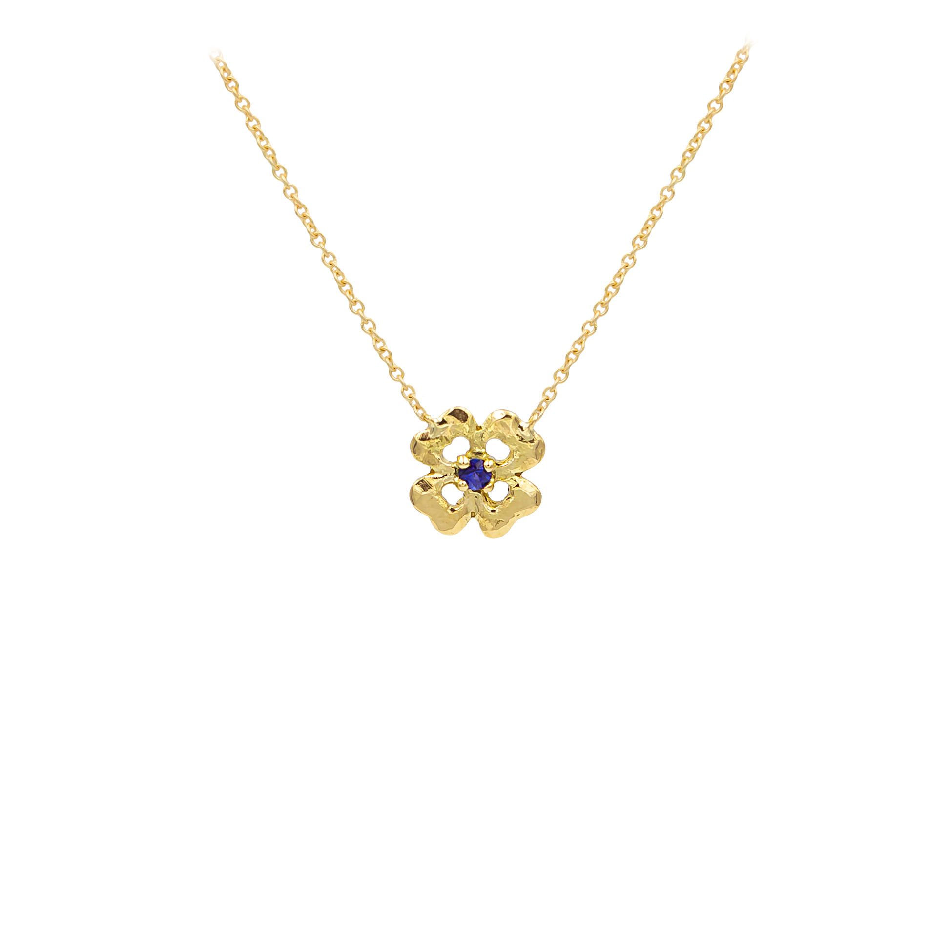 Collier Quadrifoglio Portafortuna in oro giallo 18kt Zaffiro Blu taglio brillante ct. 0,10.