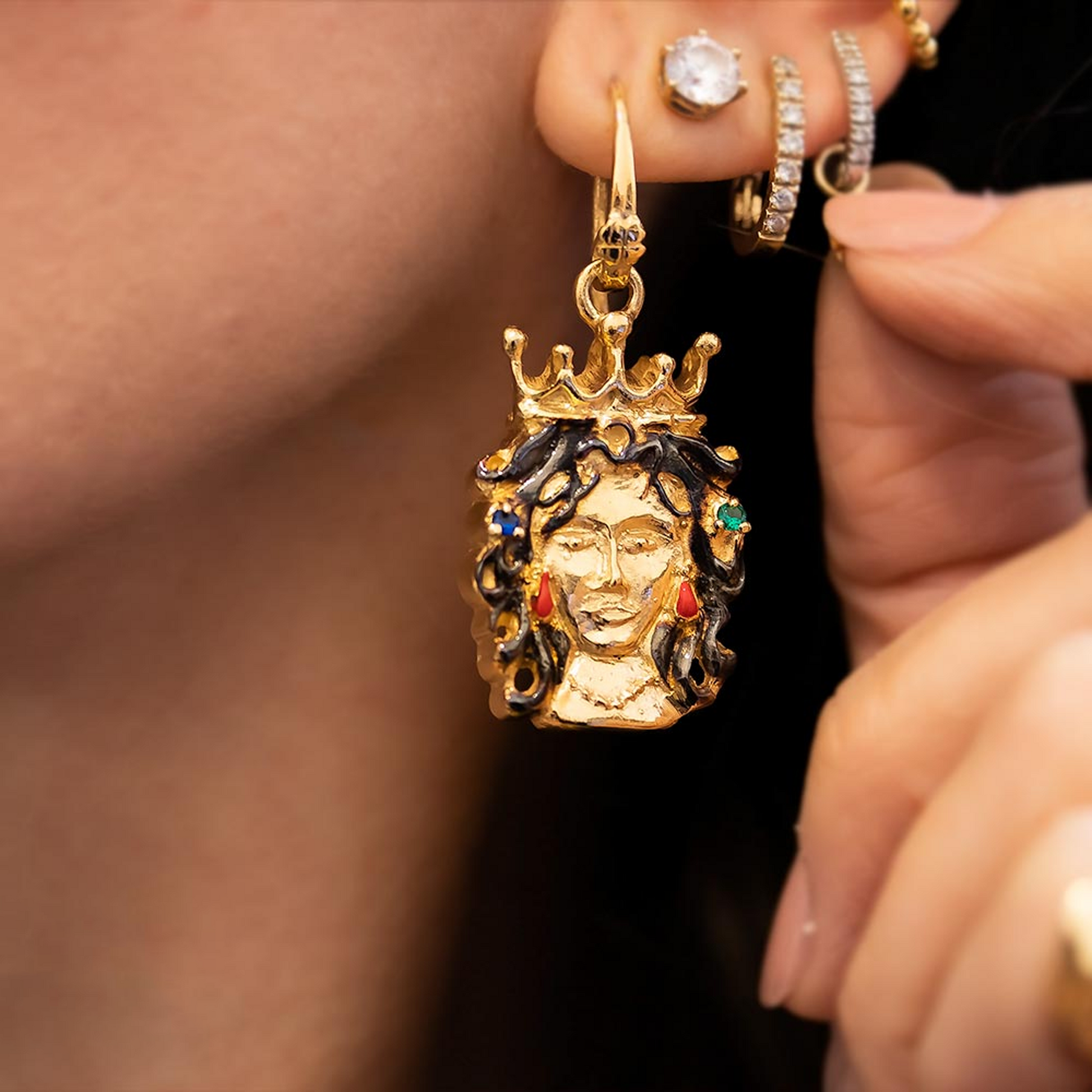 Orecchini Collezione Terra di Sicilia Donna del Moro in argento 925 dorato e brunito, smalti e gemme colorate.