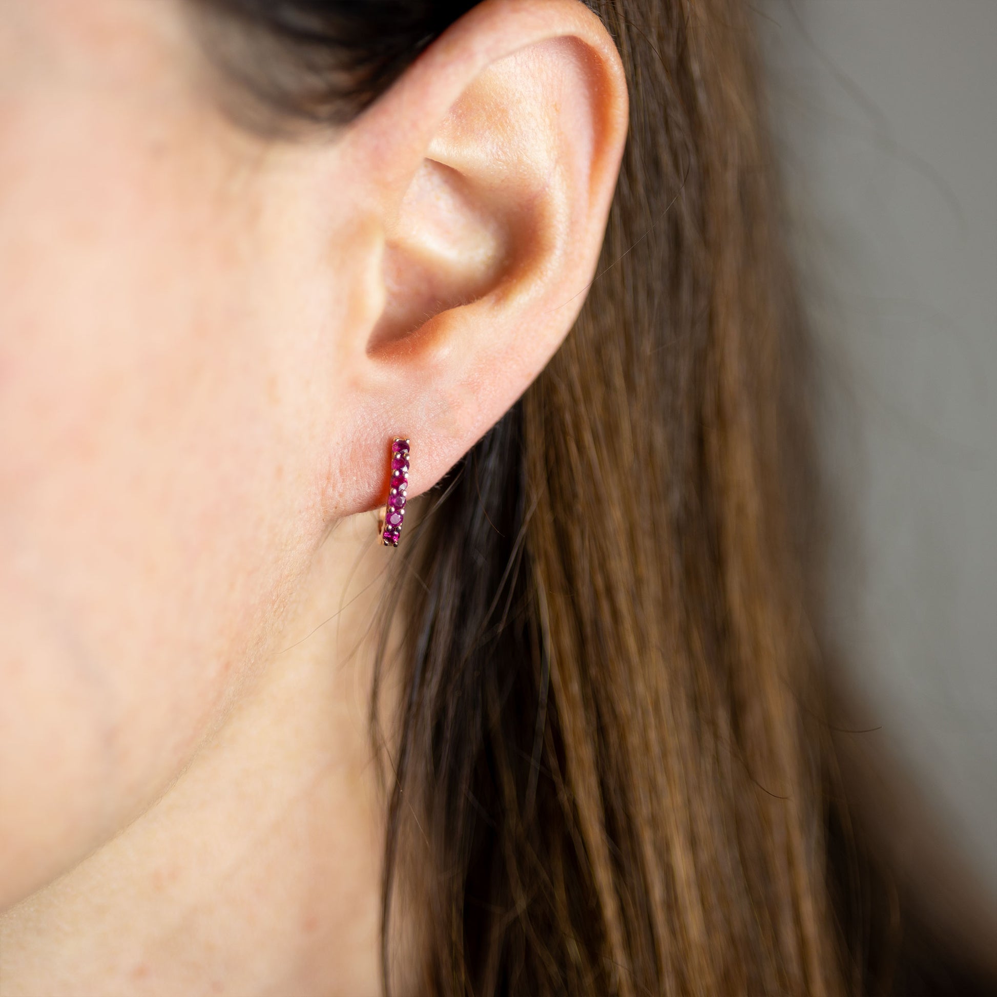 Orecchini collezione ellisse I misura in oro rosa 18kt con rubini taglio brillante ct. 0,50