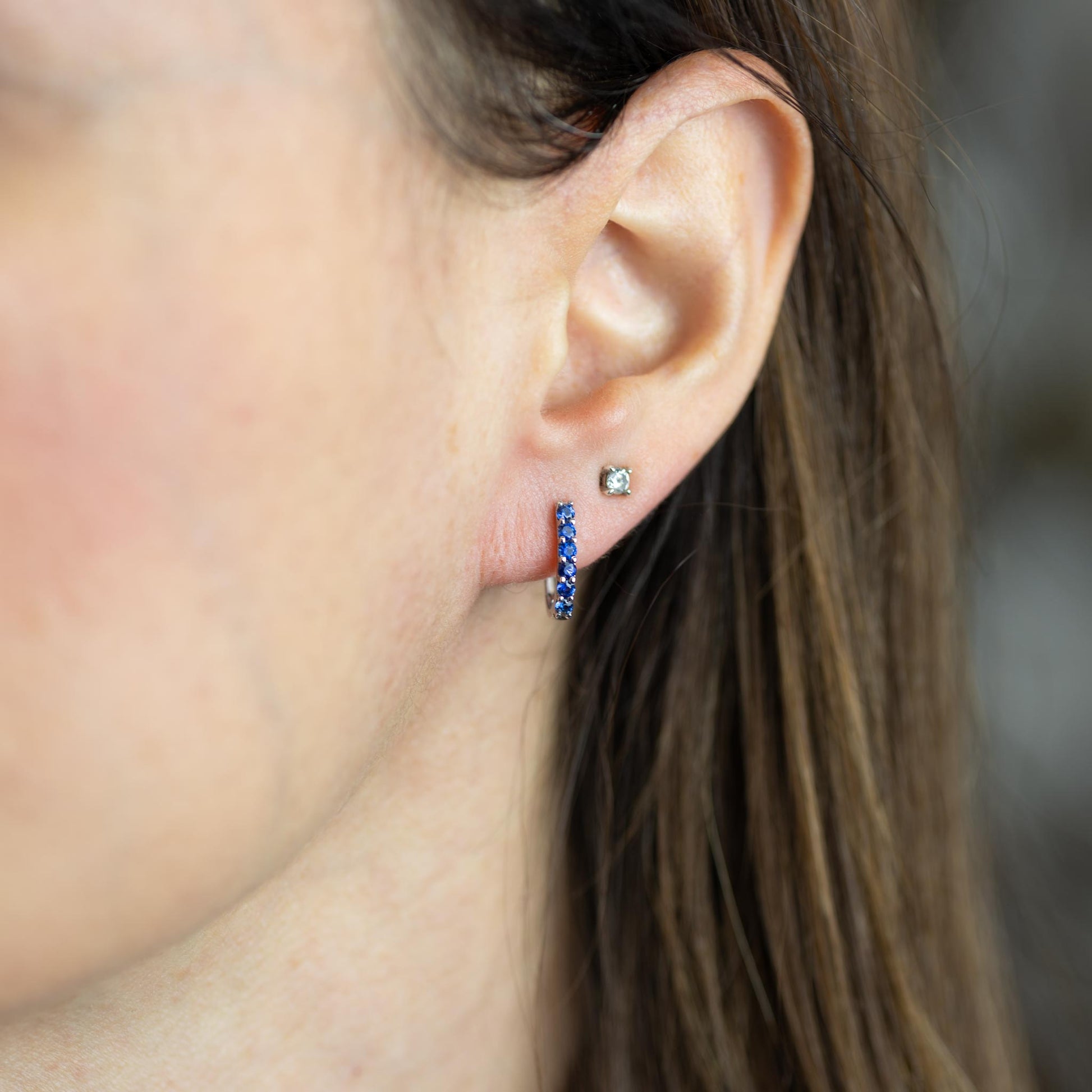 Orecchini collezione ellisse I misura in oro bianco 18kt con zaffiri taglio brillante ct. 0,82. Altezza – 12mm