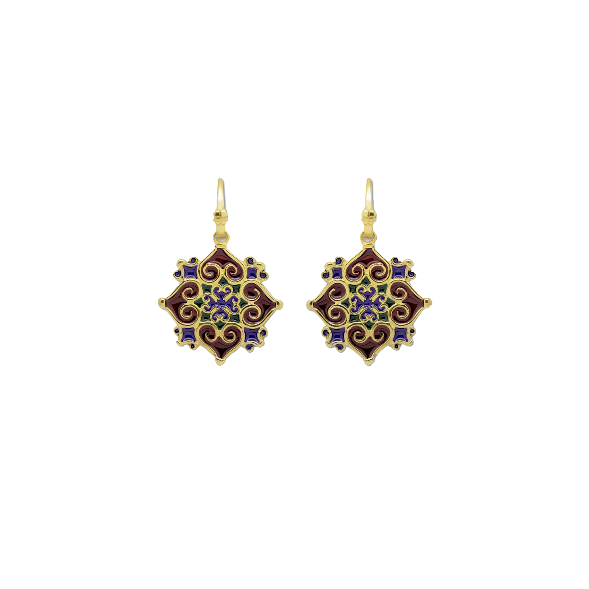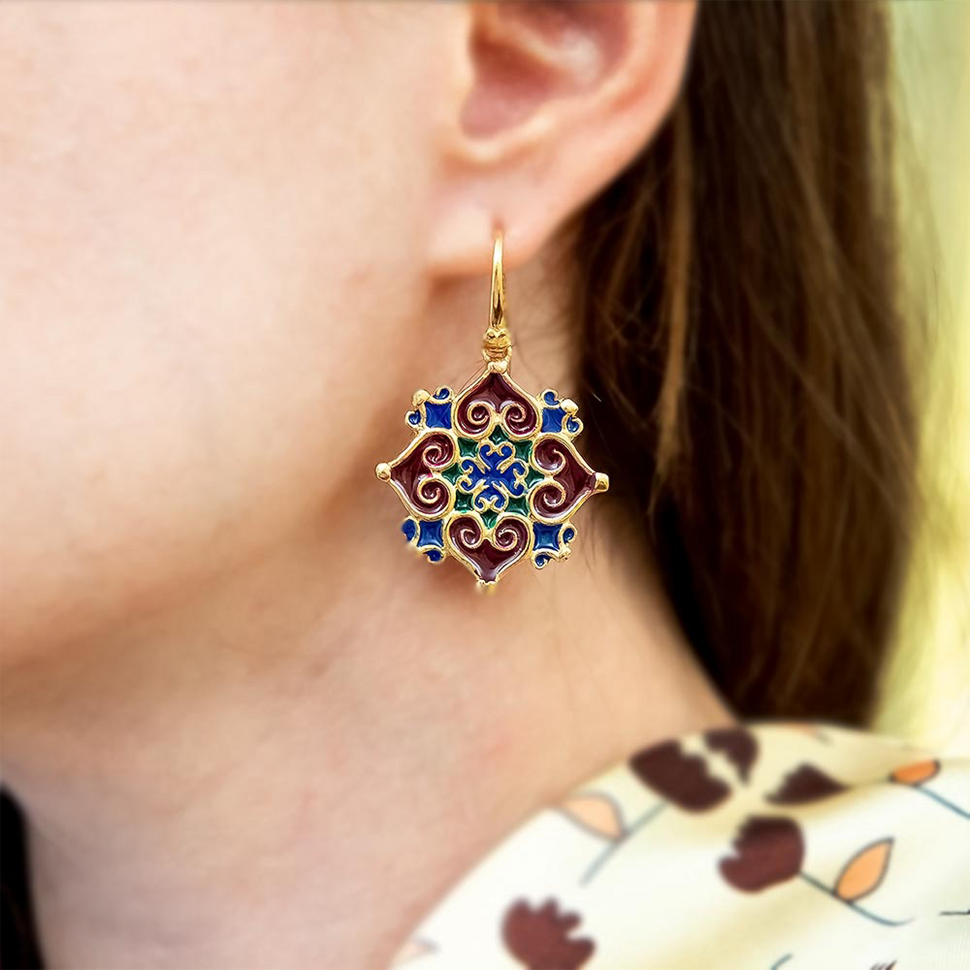 Orecchini Medi Collezione Maioliche, in argento 925 dorato e smalti colorati, Bordò – Verde – Blu.