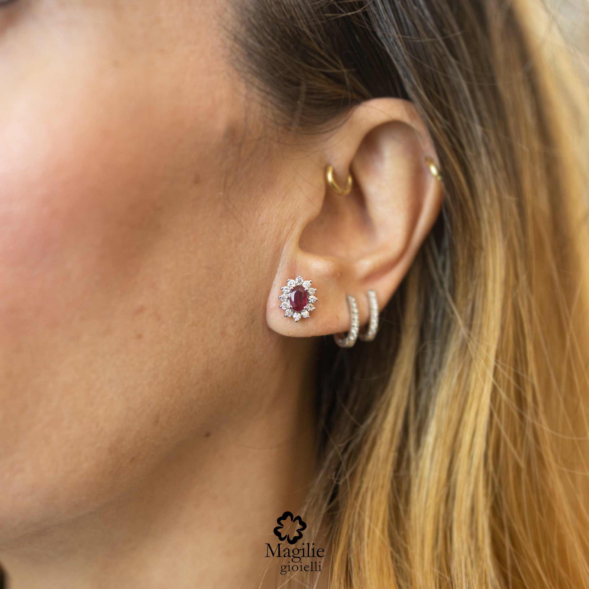 Orecchini Collier Fleur II misura in oro bianco 18kt con 24 Diamanti taglio brillante ct. 0,45 e Rubini ovali 7x5mm ct. 1,50.