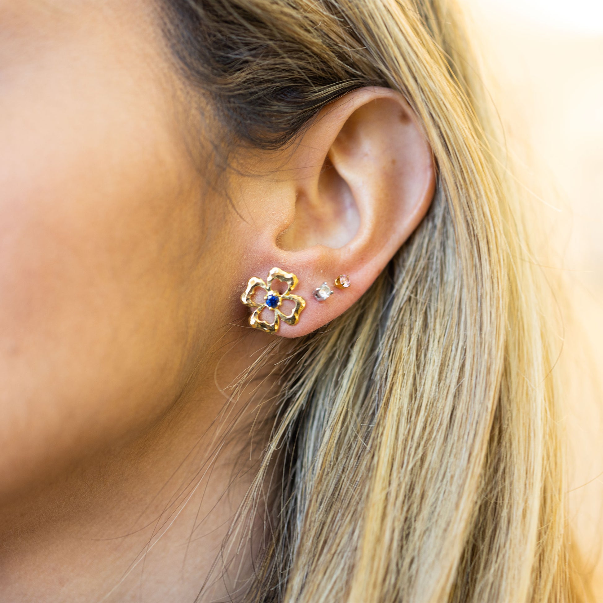 Orecchini Collezione Portafortuna con Quadrifoglio perfilo martellato in oro giallo 18kt.