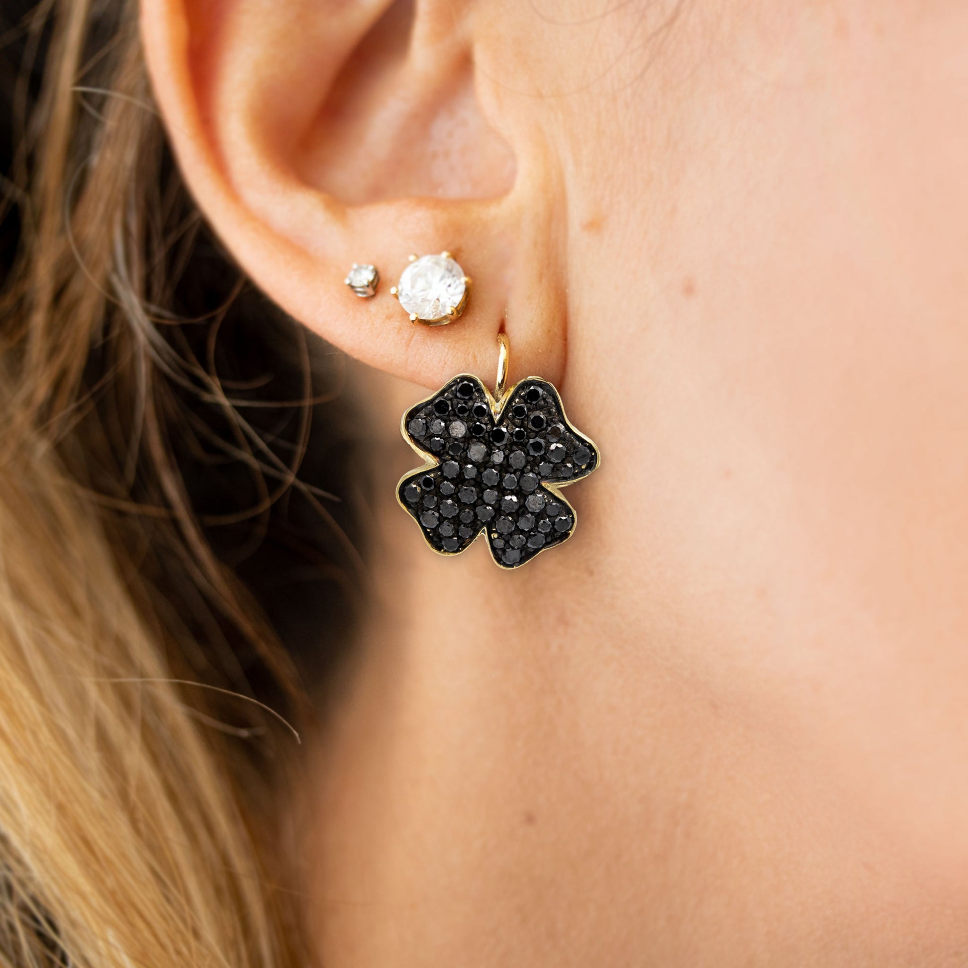 Orecchini Velvet Noir in oro giallo 18kt con pavè di diamanti neri taglio brillante ct. 2,56.