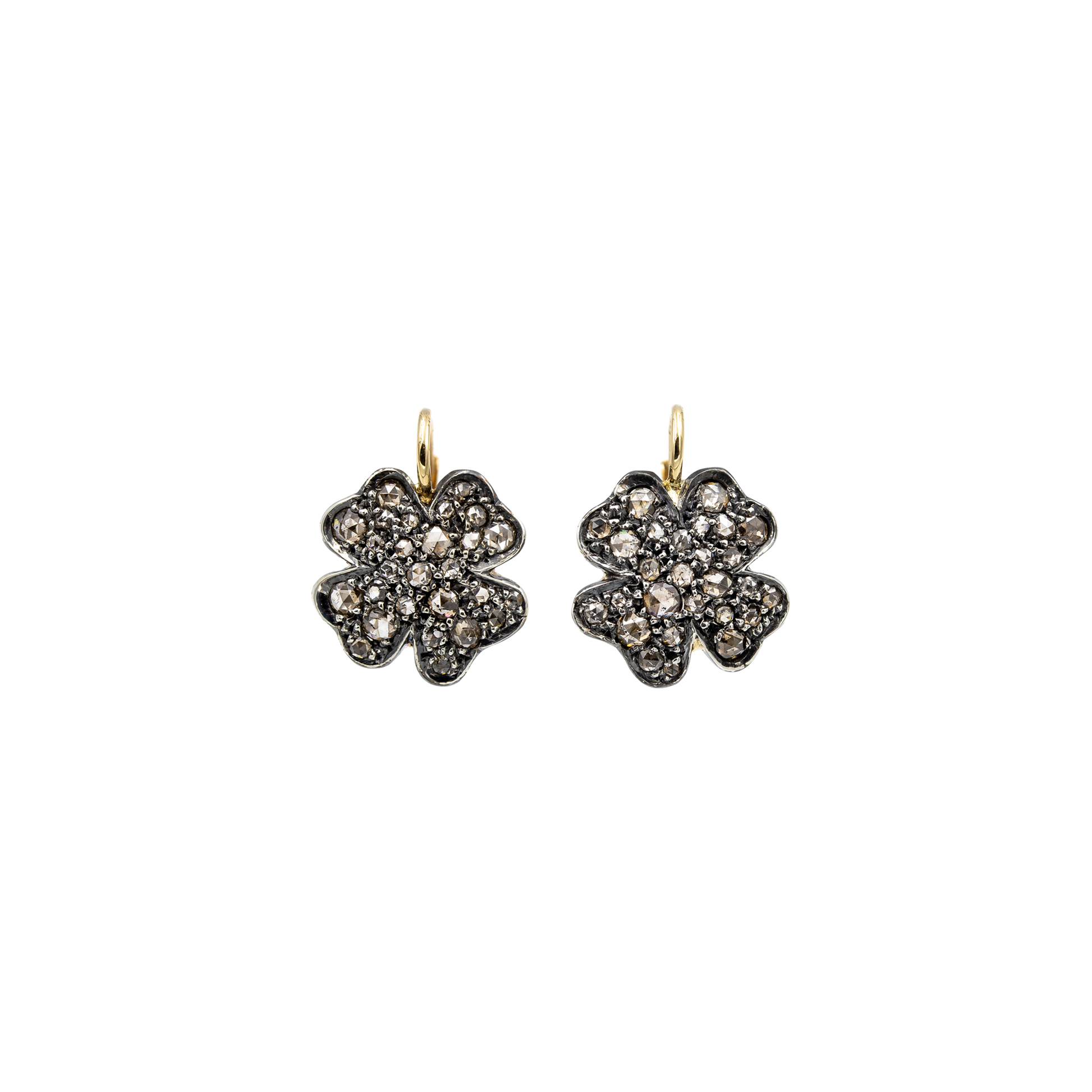Orecchini Velvet Vintage in oro giallo 18kt e argento 925 brunito con diamanti taglio rose coronè ct. 2,15.
