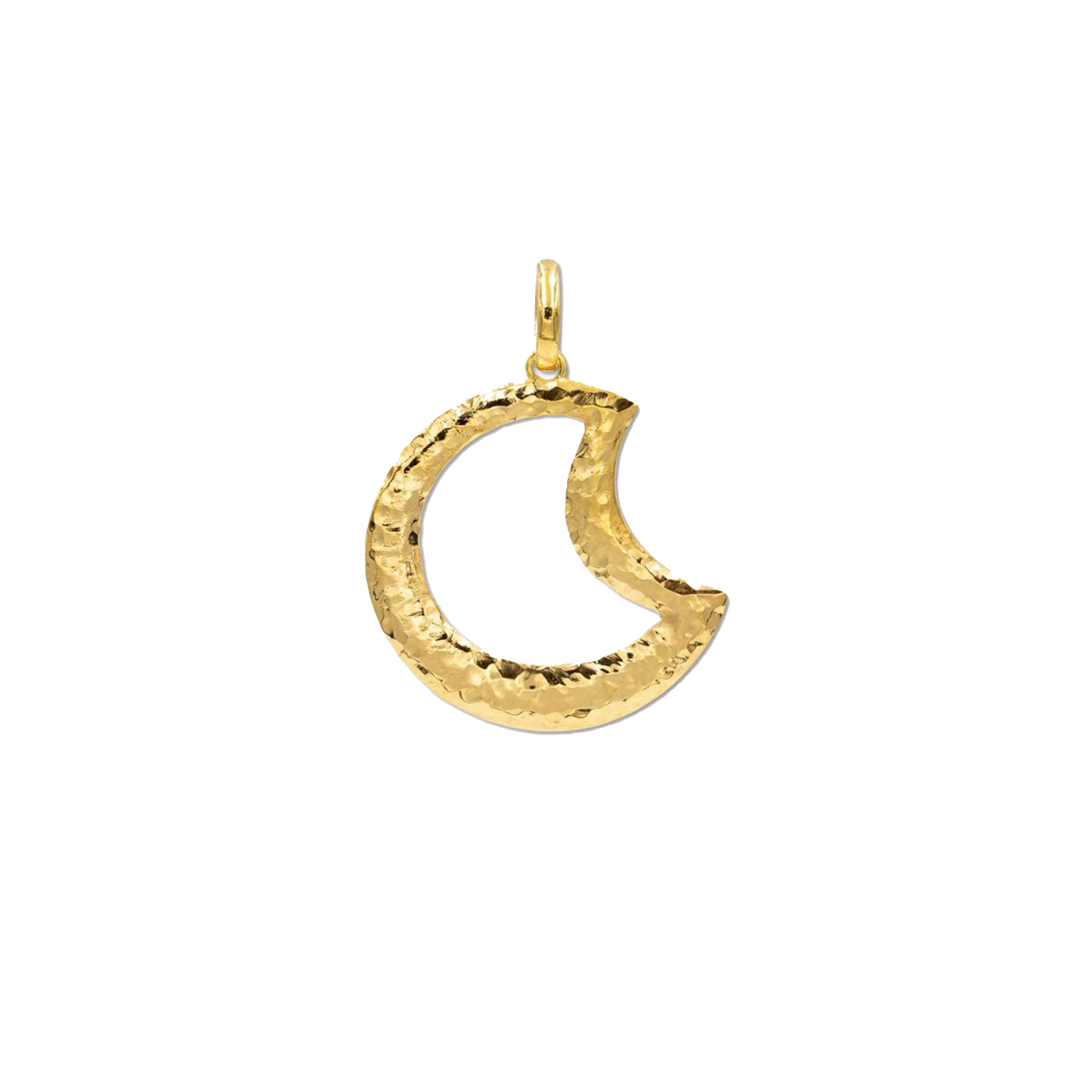 Collezione Stella Luna pendente Luna bombata perfilo martellata in argento 925 dorato.