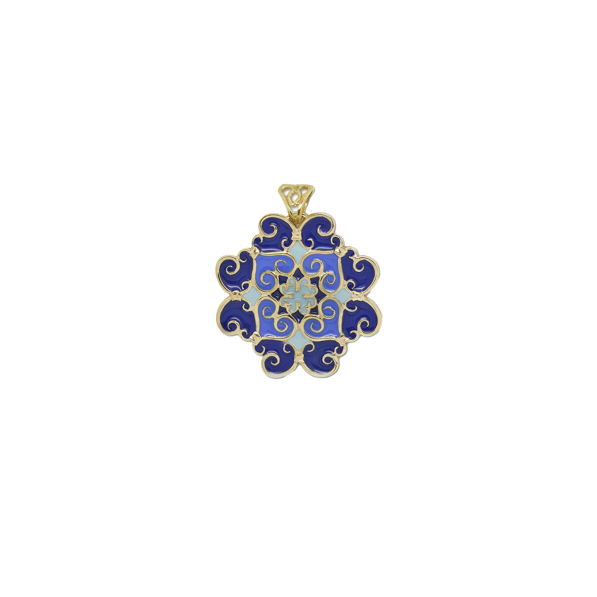 Pendente Grande Collezione Maioliche, in argento 925 dorato e smalti colorati, Blu – Azzurro – Celeste