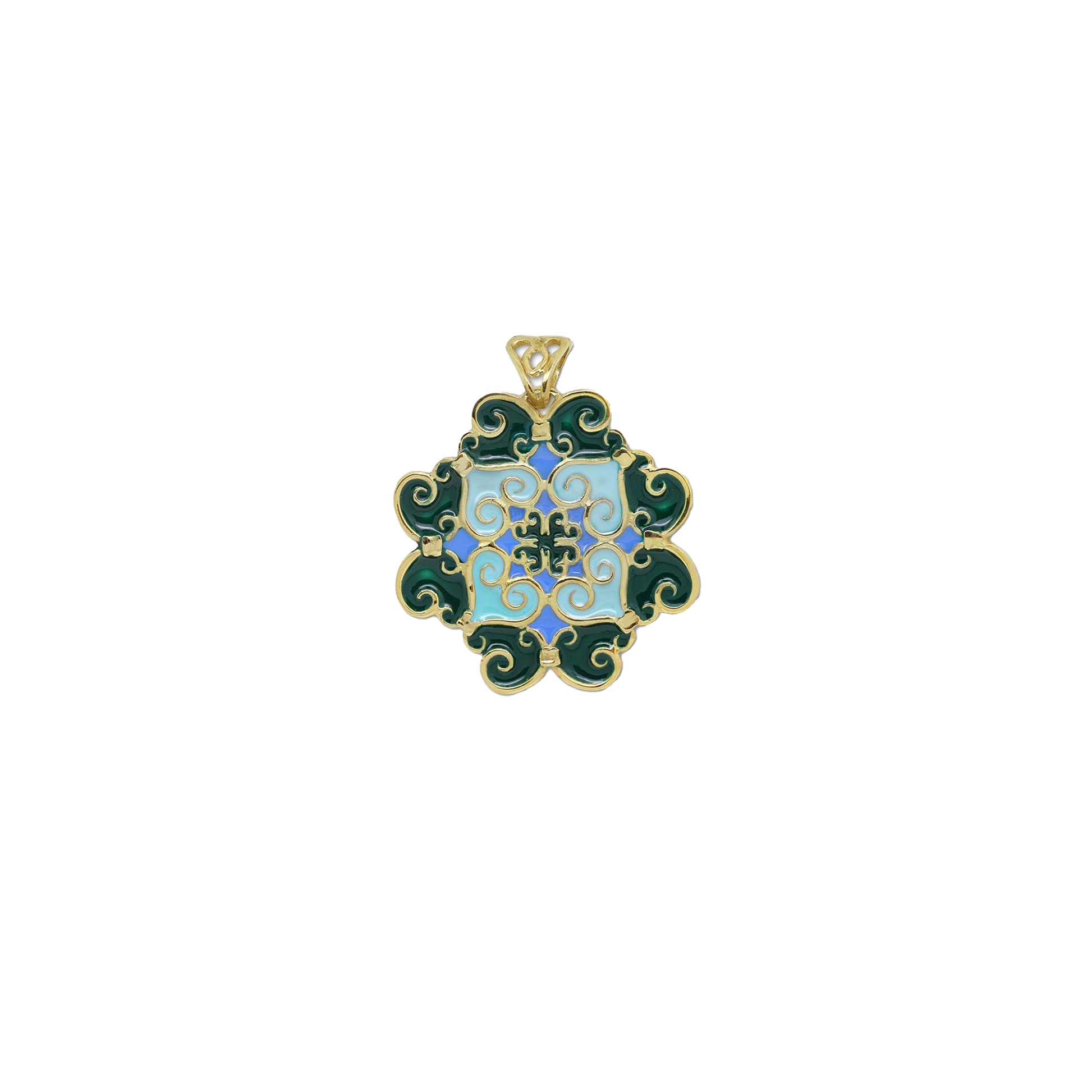 Pendente Grande Collezione Maioliche, in argento 925 dorato e smalti colorati, Verde – Azzurro – Celeste.