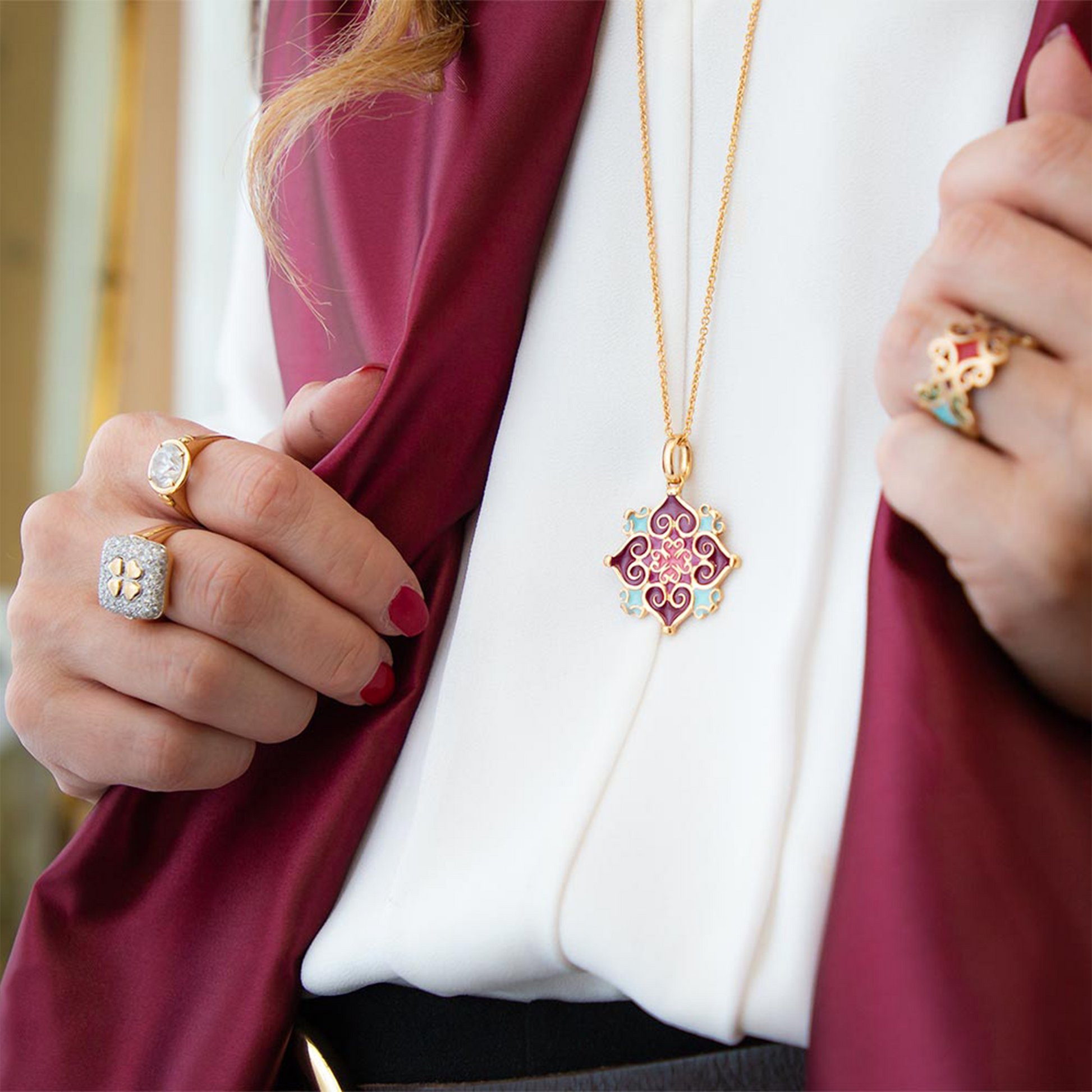 Pendente medio Collezione Maioliche, in argento 925 dorato e smalti colorati.