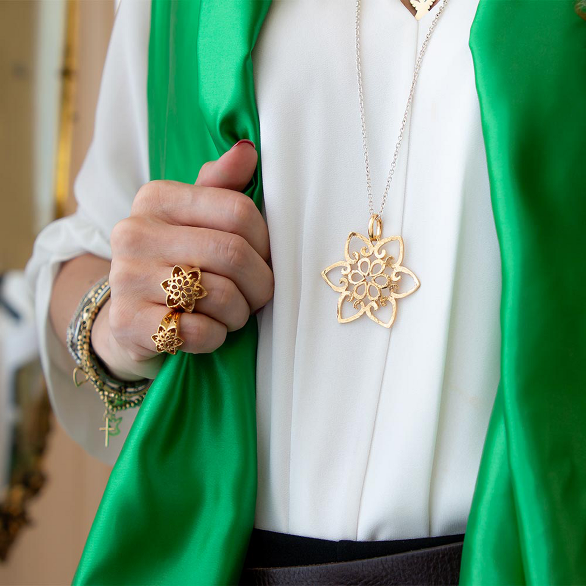 Pendente medio Collezione Fiore della Vita in argento 925 dorato.
