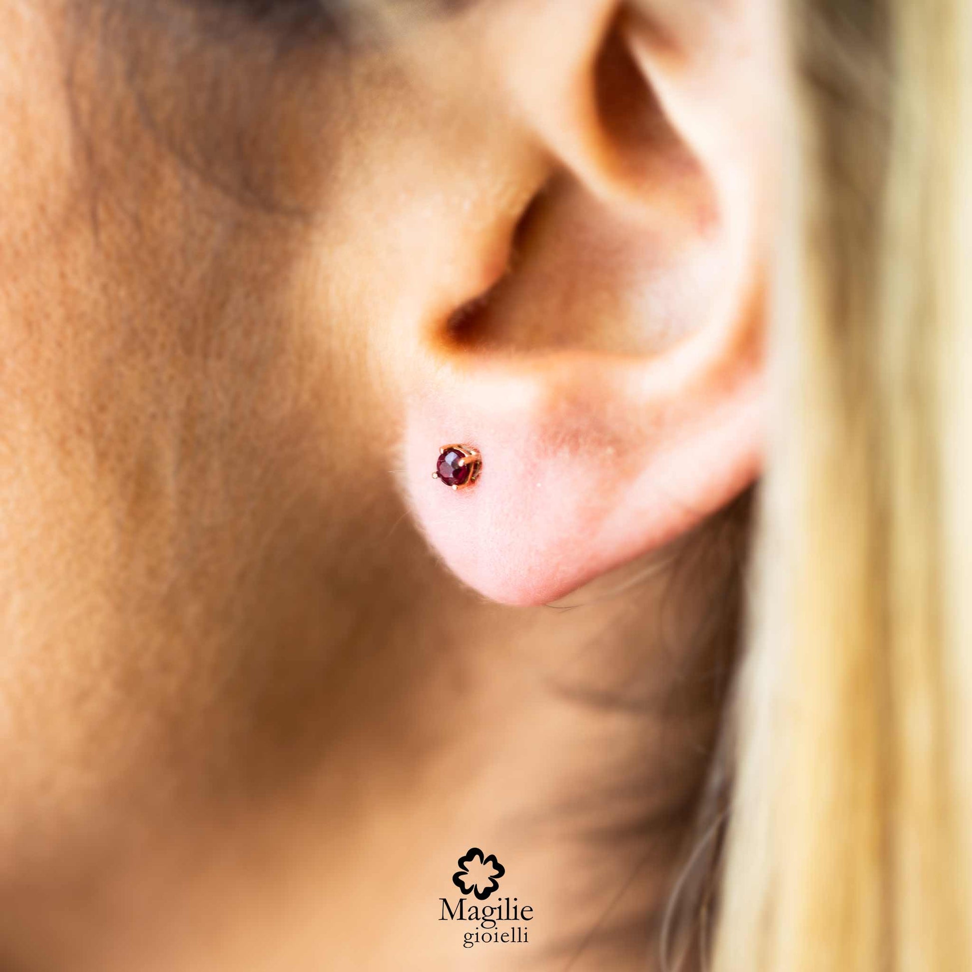 Orecchini Cerchi Candy in oro rosa 18kt con Rubini.