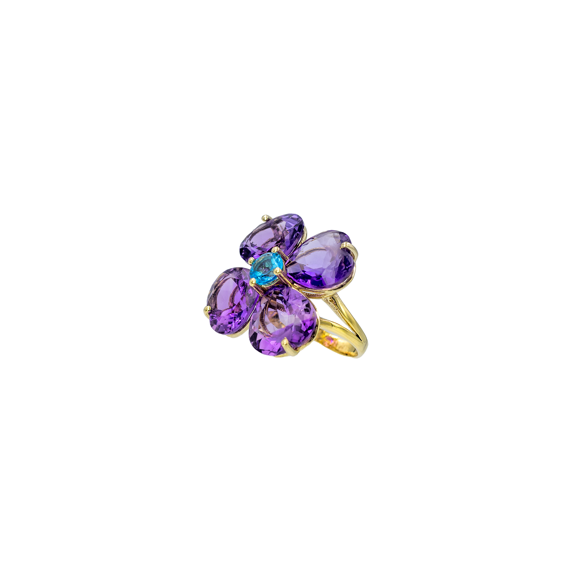 Anello Collezione 4 Cuori in oro giallo 9kt e gemme preziose.