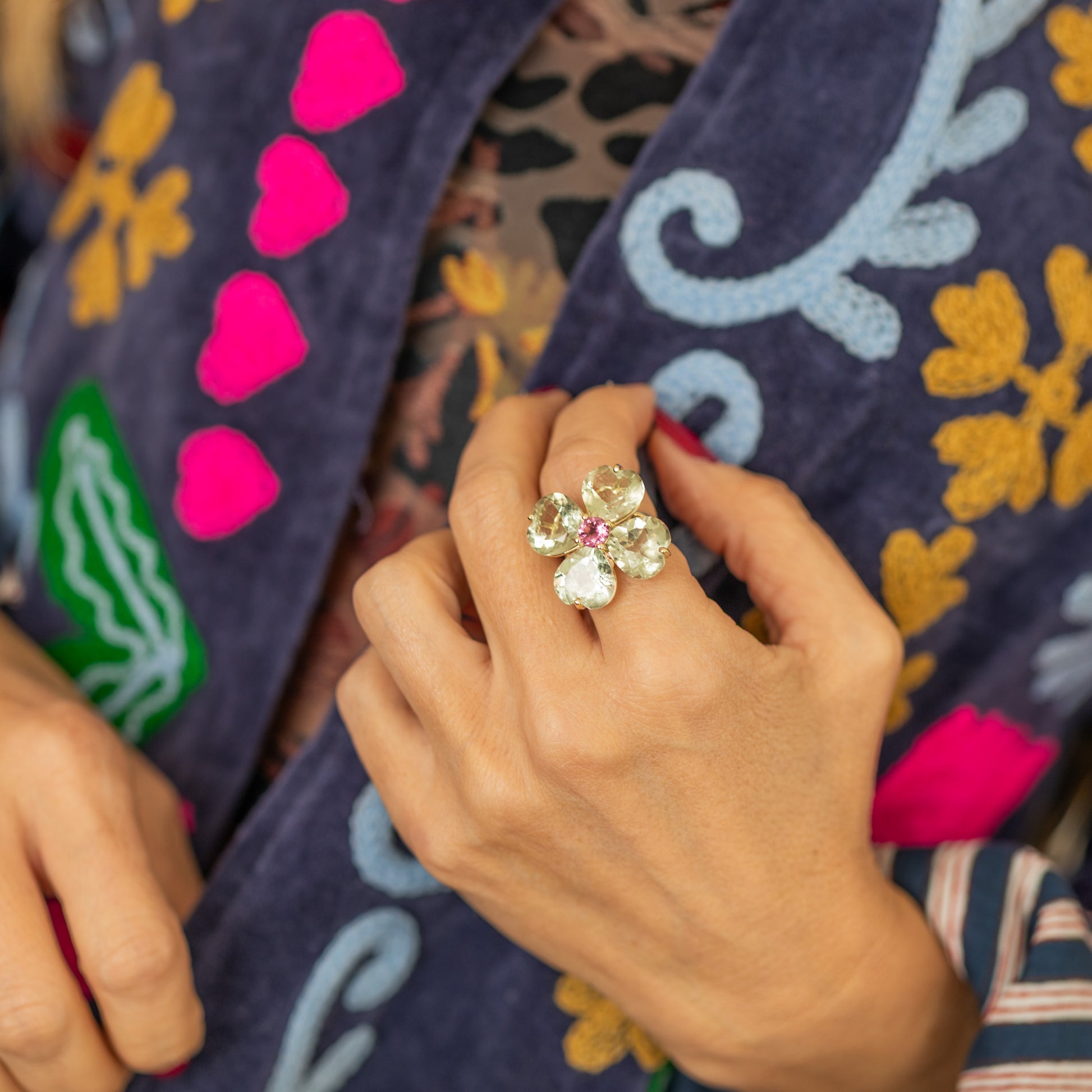 Anello Collezione 4 Cuori in oro giallo 9kt e gemme preziose.